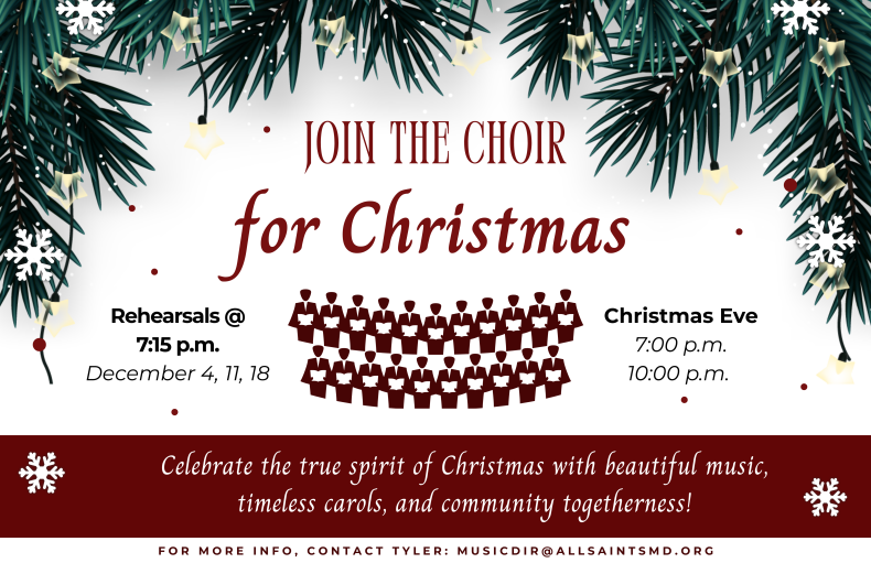While not every service has music, song has been an important part of worship for nearly a century at All Saints. In addition to our Adult Sanctuary choir, we also have a hand bell choir known as “All Saints Ringers.” The vocal choirs and handbell choir support our worship and perform at special services and concerts throughout the year. All Saints music also features prominently at Frederick’s annual Candlelight Tour of Historic Houses of Worship.